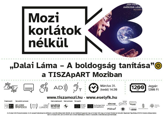 Március 31-én, kedden 14:30-tól a Dalai Láma – A boldogság tanítása című magyarul beszélő amerikai-svájci dokumentumfilmet láthatják jelnyelvi tolmácsolással, felirattal és audionarrációval akadály